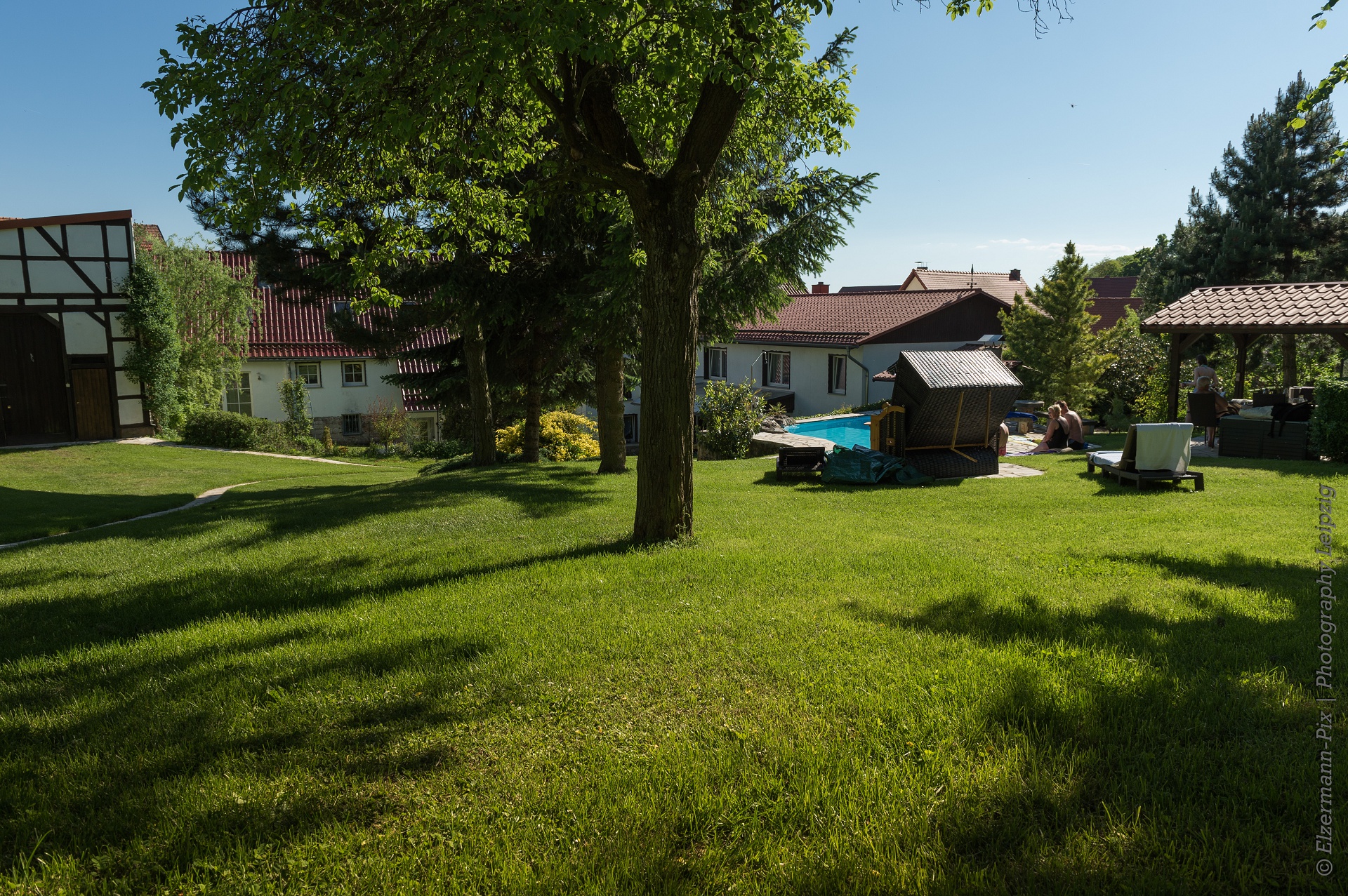 Das Grundstück ist über 8000 Quadratmeter groß und hat mehrere gemütliche Sitzecken mit Gartenmöbeln. Im Garten befindet sich ein beheizter Swimmingpool mit Gegenschwimmanlage. Entspannen sie sich nach einem erlebnisreichen Tag in der Sauna. Nutzen sie auch unsere Hausbar und den Kamin im Garten.